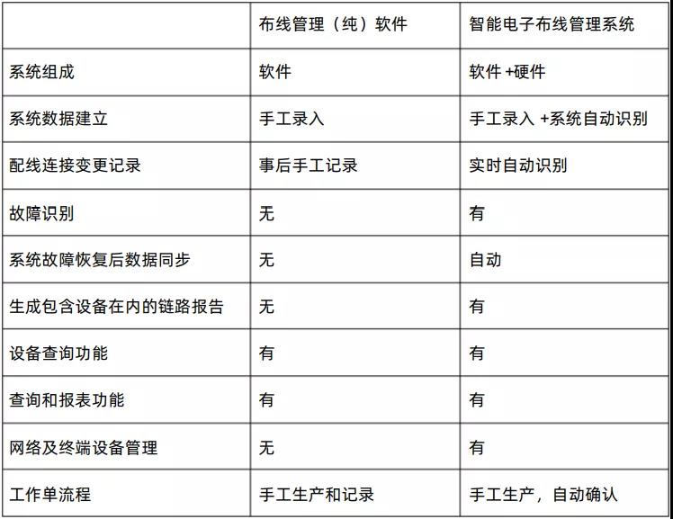 可以采用純軟件線纜管理系統(tǒng)或軟硬件一體化的智能電子線纜管理系統(tǒng)來實現(xiàn)線纜系統(tǒng)管理。系統(tǒng)功能要求如表1所示。